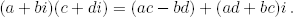 El cuerpo de los nú meros complejos ℂ se define formalmente como el conjunto ℝ2 = {(a, b) | a, b ∈ ℝ} con la suma (a, b) + (c, d) = (a + c, b + d) y la multiplicación (a, b)(c, d) = (ac−bd, ad+bc). Si llamamos i = (0, 1), vemos que i2 = (−1, 0). Si identificamos a con (a, 0), podemos escribir (a, b) = a+bi, que es la notación que vamos a utilizar. Así, por ejemplo, tenemos que ℝ ⊆ ℂ o que