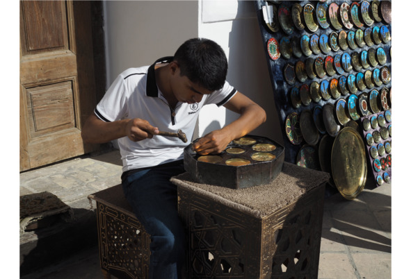 В Самарканде купила шарф. Его мне продали фактически обманом: на Регистане женщина позвала нас с Олегом в одну из дверей древнего медресе, предложив посмотреть, «как жили студенты». А когда мы зашли в комнату, куда она нас пригласила, там оказался разложен товар. То есть, вероятно, студенты медресе там действительно когда-то жили – но не в окружении такого количества шарфов, халатов и тюбетеек.