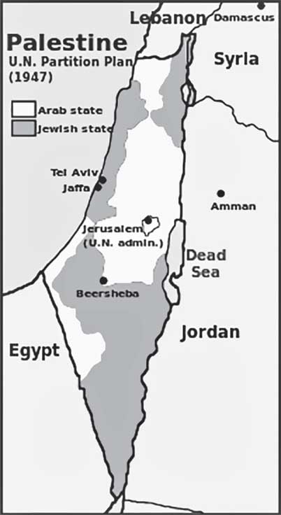 «В итоге на обсуждение Генеральной Ассамблеи ООН был вынесен проект резолюции, в целом, на основании предложений комиссии, но с советской поправкой. Англичане были уверены, что США выступят против, решение зависнет, и тем самым срок мандата продлится. Однако ошиблись. У Штатов было свое видение ситуации, и не обо всем они уведомляли Лондон. Так что, хотя дебаты, начатые 25 ноября, тянулись аж четыре дня и в итоге расклад, согласно резолюции № 181/II, обескуражил островитян: 25 голосами «за» при 13 (мусульманские страны плюс почему-то Куба) «против», 17 воздержавшихся и двух не явившихся, Палестину таки разделили. Евреям (33 % населения), контролировавшим на тот момент примерно 7 % территории мандата, имея в виду будущий приезд эмигрантов, присудили 56 % спорной земли, причем земля эта не пустовала, так что в грядущем государстве еврейское население составило бы всего лишь немногим более половины. При этом спорный Иерусалим оставался под управлением ООН, а на территории будущего еврейского государства определился город-анклав Яффо, находившийся впритык к Тель-Авиву, но населенный арабами. Что до англичан, то их обязали покинуть Палестину не позднее 1 августа 1948 года. Это был триумф для евреев (возражали только «Иргун» и ЛЕХИ, заявившие, что не признают «грабительский план», но их никто не слушал). Это был удар по арабам, оценившим план, как «катастрофу» для всех мусульман, как тех, что окажутся «под еврейским игом», так и тех, кто получит «независимость на худших землях» (лучшие, в самом деле, отходили евреям, а что основная часть этих «лучших» была евреями же и окультурена, значения для арабов не имело). Мириться с таким раскладом они не собирались. Джамаль Аль-Хусейни, исполнявший обязанности председателя ВАК (формальный председатель, муфтий Амин, генерал СС, с трудом избежавший выдачи югославам и виселицы, сидел тише воды ниже травы), честно заявил с трибуны ООН, что «Палестина будет охвачена огнём и кровью, если евреи получат хоть какую-нибудь её часть»». http://gazeta.rjews.net/vershinin.shtml