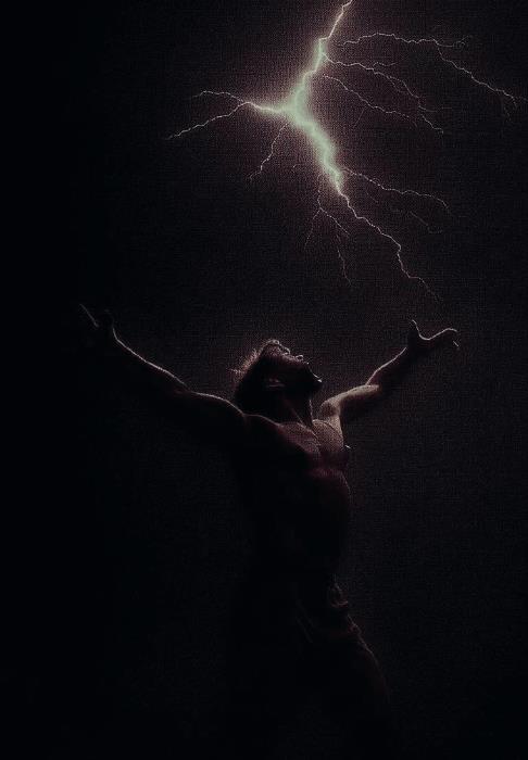 Герой блуждал в краях далеких,Он без еды… И без питья…Не видел он вокруг высокихСтволов деревьев ни зверья.Устал он очень, обессилен:«Испить хотя бы из ручья…»Но только шум в ночи извилин…Сверкает в небе – Молния-я-я…«Найти дорогу постараться,Я вижу двери, нет ключа…На гору буду я взбираться!»Сверкает в небе – Молния-я-я…«Оттуда видно будет лучше!Пусть светит мне она всегда!»Но нужно лес пройти дремучий…Сверкает в небе – Молния-я-я…Идет по лесу он отважно,Но нет в руках его копья…Вокруге тьма, и очень страшно…Сверкает в небе – Молния-я-я…И слышит он, как волки воют…Они бегут за ним, вопя…И часовщик могилу роет…Сверкает в небе – Молния-я-я…«Бежать быстрее без оглядки!Догонят волки вмиг меня…»Сражаться нечем, время схватки!Сверкает в небе – Молния-я-я…«Но как же, – нет! Не время падать!Не этот путь моя судьба!Идти вперед на гору надо!»Сверкает в небе – Молния-я-я…Но тьма сгущает краски злые!Пред ним шипит в ночи змея!И в те минуты роковыеСверкает в небе – Молния-я-я…Он оглянулся, сзади волки…«Их стая жаждет рвать меня…»Деревья, ветер рядом смолкли…Сверкает в небе – Молния-я-я…Конец все ближе, нет минуты…«На небе ждет меня судья…»Укус змеи на шее лютой…Сверкает в небе – Молния-я-я…Упал от боли, взгляд стеклянный,«Не видят свет мои глаза…»И только кровь струится… раны…Сверкает в небе – Молния-я-я…..Молния-Я-я-Я-я!!! Молния-Я-я-Я-я!!!А-а-А-а-А!!!!! А-а-А-а-А!!!!!Молния-Я-я-Я-я!!! Молния-Я-я-Я-я!!!А-а-А-а-А!!!!! А-а-А-а-А!!!!!Герой почувствовал вдруг силу,Что не имел сам никогда!Его прям в сердце поразила!В груди сверкает – Молния-я-я!!!Схватил герой змею за горло!И рвется гадкой чешуя!Не знал гадюка это, кобра?В груди сверкает – Молния-я-я!!!К волкам вернулся, взгляд свирепый!Гремят, рокочут небеса!Он поломает двери, цепи!В груди сверкает – Молния-я-я!!!Молния-Я-я-Я-я!!! Молния-Я-я-Я-я!!!А-а-А-а-А!!!!! А-а-А-а-А!!!!!Молния-Я-я-Я-я!!! Молния-Я-я-Я-я!!!А-а-А-а-А!!!!! А-а-А-а-А!!!!!