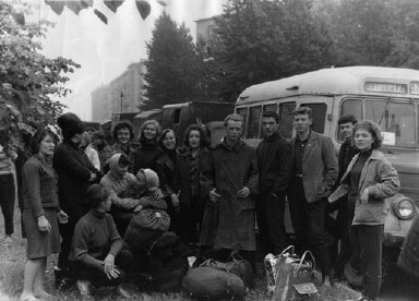 Студенческий десант в колхоз от группы 193. Справа налево: Михайленко, Горбунов, Осин, Кустов, Нилов, Георгенбергер, Чугунова, Преловская, Козлова, Коваленко, Арбузова. На переднем плане справа налево: Гончарук, Лазарева, Синьковская.