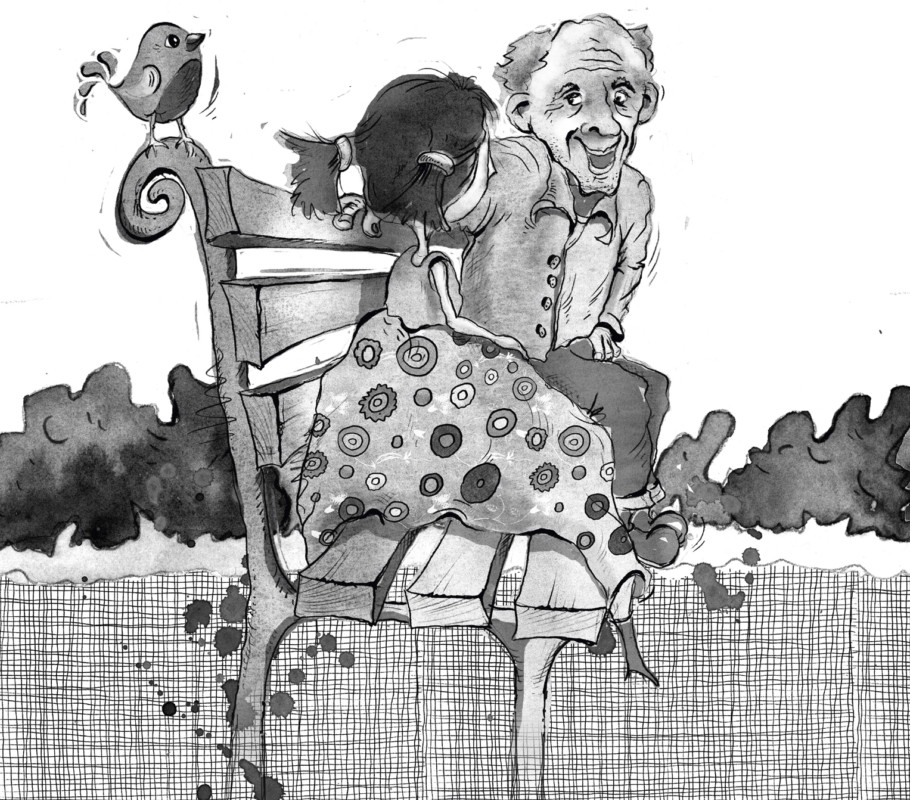 »Seit wann sind denn eigentlich alle so grimmig und traurig?«, fragte sie den alten Mann, während sie im Park auf einer Bank saßen und die Vöglein ihnen neugierig Gesellschaft leisteten und aufgeregt um sie herumflatterten.