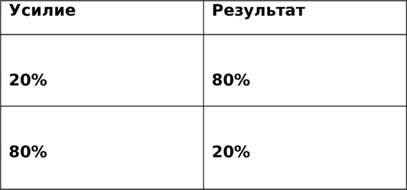 Что такое принцип Парето? 20/80, 80/20. Не будем пытаться цепляться к цифрам, наверное, они не такие жёсткие. Это неважно – важен принцип, важна прогрессия. 20% моих усилий приносят 80% моих результатов, а остальные 80% моих усилий приносят 20% моих результатов. Это страшно.