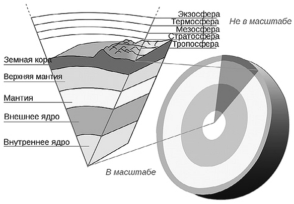 Рис. 29. Послойное строение атмосферы и Земли