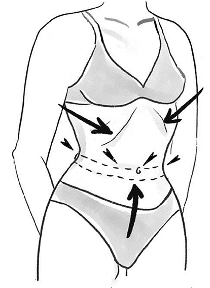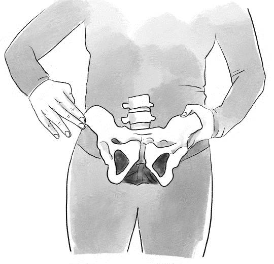 Положите руки на талию и проведите их немного вниз – вы упретесь ладонями в гребни подвздошных костей. Примерно под указательными пальцами у вас окажутся верхние передние подвздошные ости (это выпирающие косточки спереди).