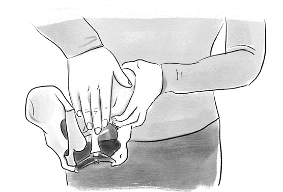 Если расположить основания ладоней на верхних передних подвздошных остях, а пальцы направить по диагонали внутрь и вниз, вы найдете лобковые (лонные) кости.