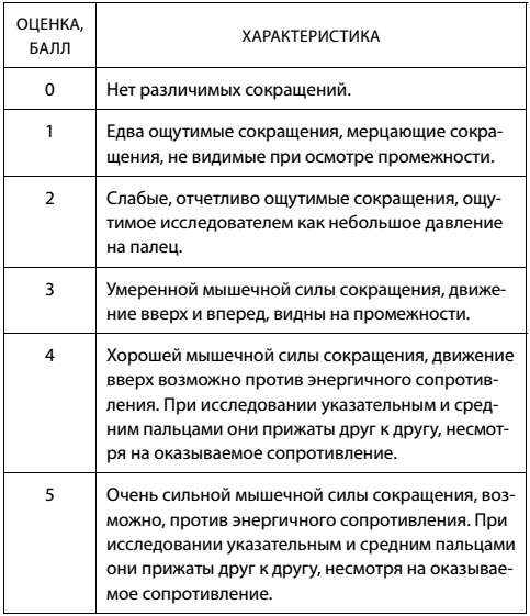 Также может быть использована шкала PERFECT, которая позволяет оценить не только силу сокращения, но и такие параметры, как время удержания, количество медленных и быстрых повторений.