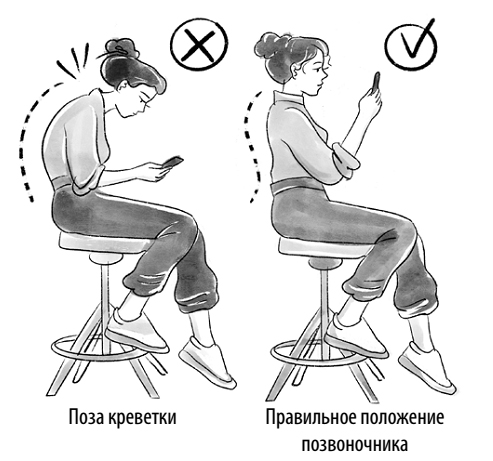 Если вы понимаете, что бóльшую часть времени проводите в позе креветки, сутулитесь, возьмите себе за правило каждый час вспоминать о выстраивании вертикальной оси тела и сохраняйте ее хотя бы несколько минут – это уже будет отличная тренировка!