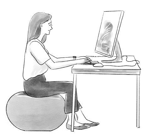 Не нужно использовать фитбол или балансировочную подушку все время – 15 минут в каждые час-два будет достаточно. Когда вы сидите на нестабильной опоре, ваши глубокие мышцы-стабилизаторы работают сами по себе, без выполнения каких-либо специальных упражнений.