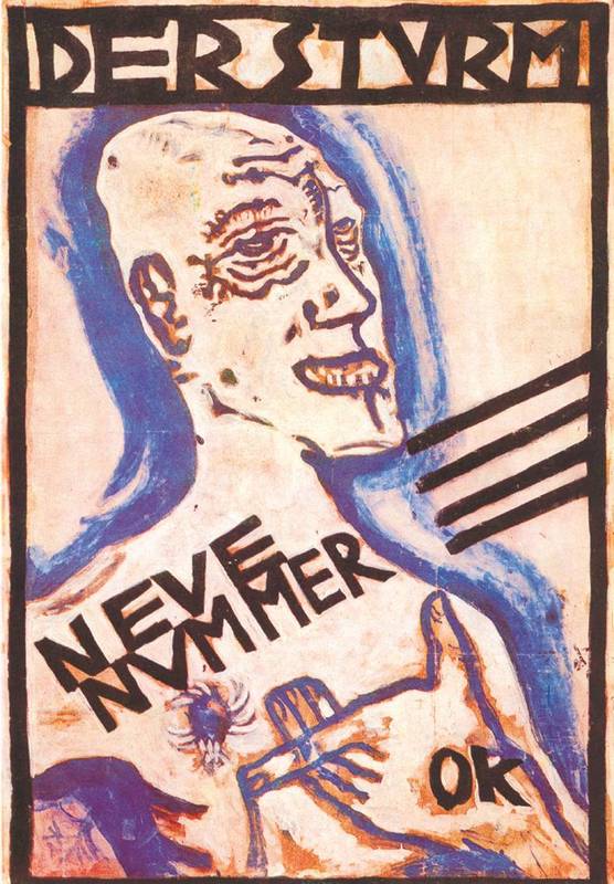 Впервые название направления появилось в 1911 году в статье Х. Вальдена, основателя журнала «Штурм», одного из первых авангардных журналов, который обратил свое внимание на страждущее человечество. Очень своеобразен плакат О. Кокошки, извещающий о первом выпуске журнала и ставший первым произведением в духе экспрессионизма. Художник изобразил искаженную лысую голову мужчины с опущенными плечами. Его лицо бледно, как у трупа, а глаза и рот лихорадочно агрессивны. Грубой рукой человек показывает на рану в груди. Кокошка вспоминал: «Я задумал его как обвинение против венцев, но несколько лет спустя, во время войны, точно в этом месте пронзил мне легкие русский штык».