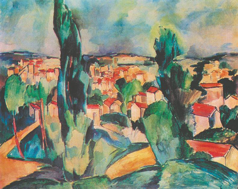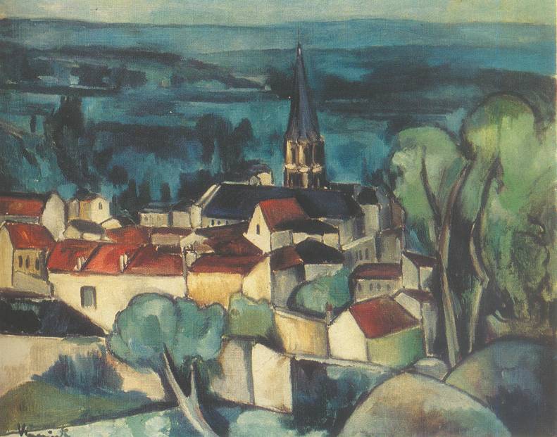 В конце 1900-х годов Вламинк увлекся художественной манерой П. Сезанна. Создается впечатление, что художник довел красочное буйство до высшей точки, и его цветовая палитра вдруг приобрела сдержанность и суровость. Как и у Сезанна, в ней теперь доминируют синие и зеленые оттенки. Характер мазка также изменился. Он уже не стремительный и энергичный, а тугой и медленный. Полотна более спокойны по настроению, но и в них прорывается тревожная, почти лихорадочная манера письма, порой разрушающая ясные формы, что свидетельствует об угнетенном состоянии художника в этот период.