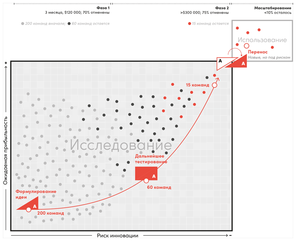 Решение отдать многообещающую идею, а не ставить на ней крест. Идею можно продать другой компании, инвесторам или команде, которая занималась ее исследованием. Компания может проинвестировать отделенное направление и выкупить его обратно на более позднем и менее рискованном этапе.