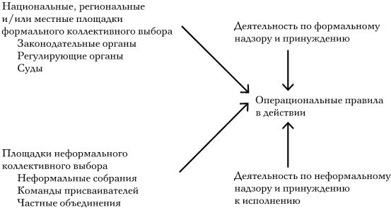 Рис. 2.3. Взаимодействие между площадками формального и неформального коллективного выбора, и операциональных правил, касающихся ОР
