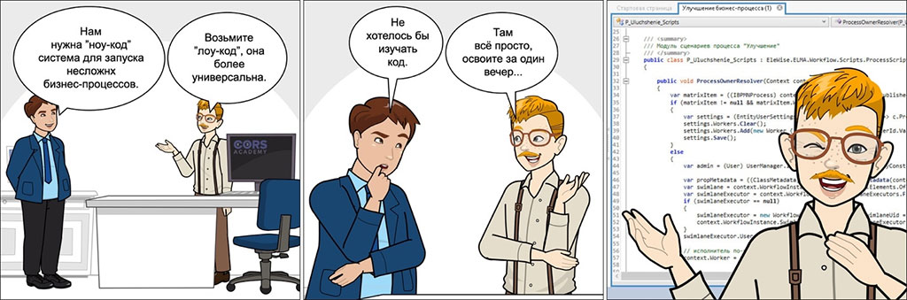 По факту «1С: Предприятие» является low-code системой. То есть можно не знать код, но создать конфигурацию для автоматизации тех или иных бизнес-процессов при помощи различных конструкторов. Но всё-таки вряд ли она будет жизнеспособной, если не вносить какие-то правки в код. Поэтому бизнес-аналитики, которые работают с «1С: Предприятие», всегда немного и системные аналитики: основы встроенного языка надо знать, чтобы понимать принципы работы системы.