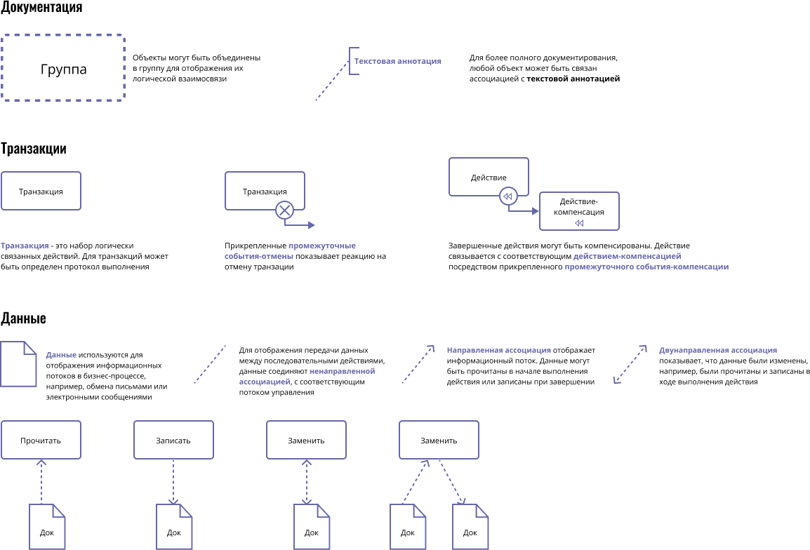 Элемент «данные» говорит о том, какие данные нужно сохранить, а какие – считать. Например, когда нужно задокументировать результат действий в бумажном документе или в автоматизированной системе.