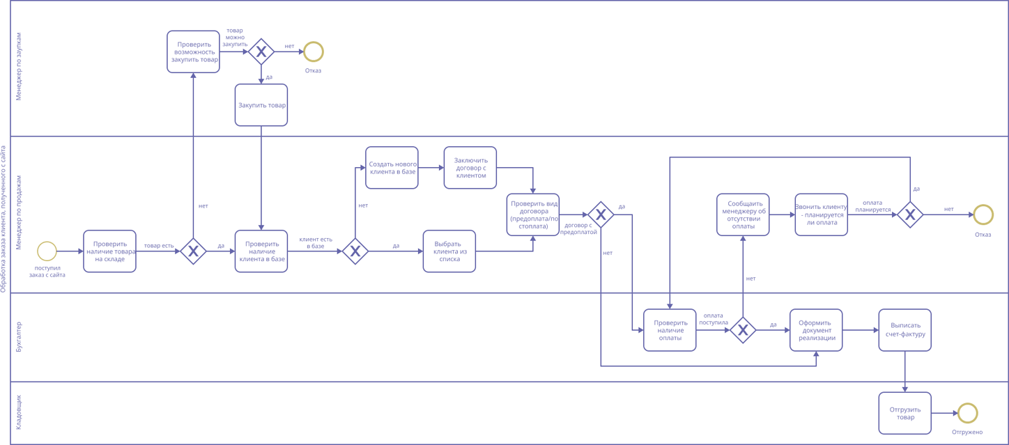 Бизнес-процесс обработки заказа клиента, полученного с сайта