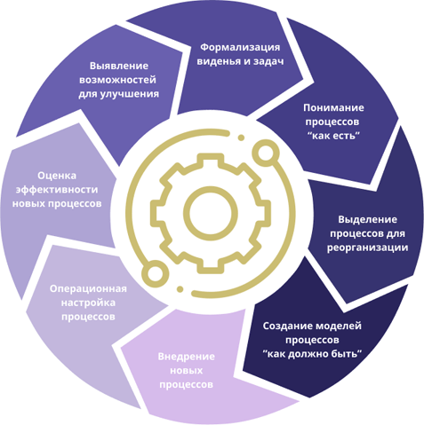 Реинжиниринг бизнес-процессов – это поэтапные изменения в компании, направленные на совершенствование деятельности, измеряемые с точки зрения бизнес-процессов и их показателей.