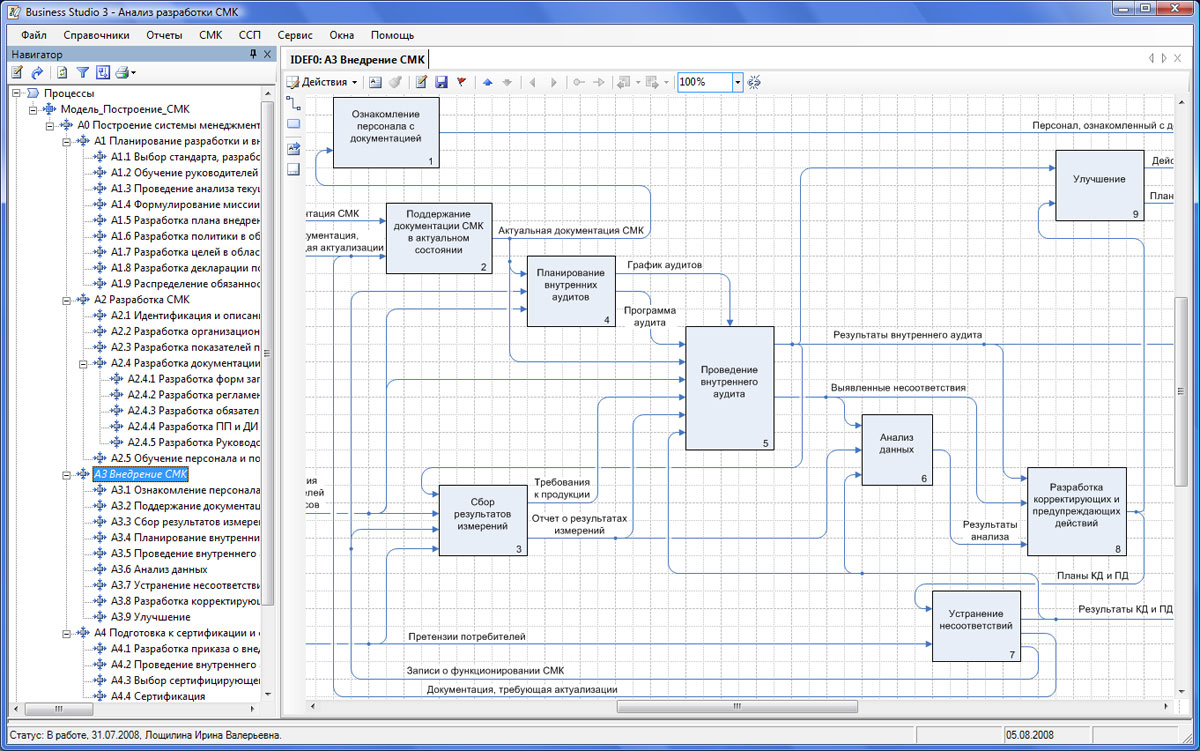 Система позволяет описывать графические схемы сложных бизнес-процессов в множестве нотаций. Имеются атрибуты процесса и карточки элементов процесса. Возможны назначение метрик и показателей эффективности, показателей по BSC (системе сбалансированных показателей), а также формирование отчетов по показателям.