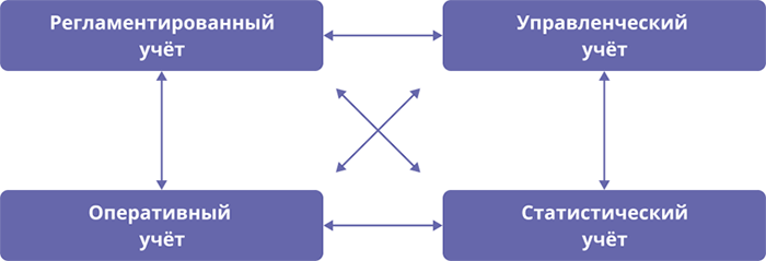Далее пройдемся по основным видам учёта подробнее, а также рассмотрим некоторые подвиды оперативного и регламентированного учёта. Статистический учёт рассматривать не будем, поскольку он напрямую не служит целям бизнеса, а лишь предоставляет информацию для специальных служб. Конечно, для принятия решений можно пользоваться статистическими данными, но обычно статистика ведется вне предприятия.