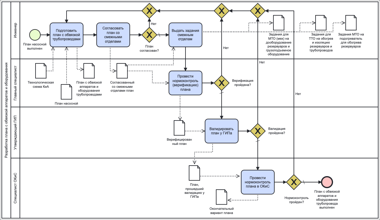 Комментарий к диаграмме: МТО – Материально-техническое обеспечение, ТТО – Теплотехническое обеспечение, ГИП – Главный инженер проекта, ОКиС – Отдел качества и стандартизации.