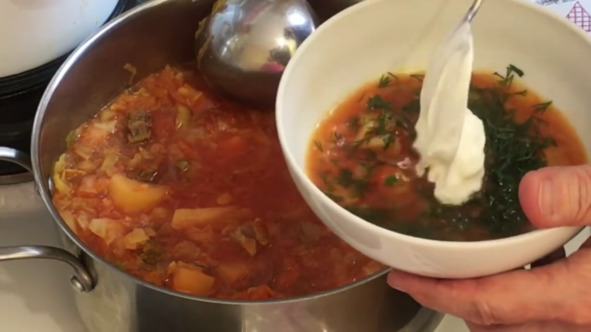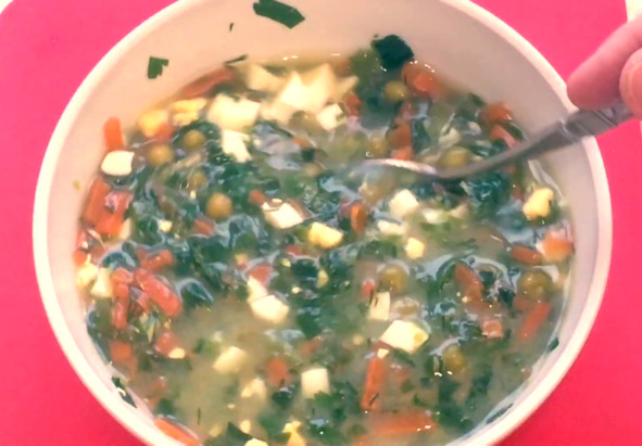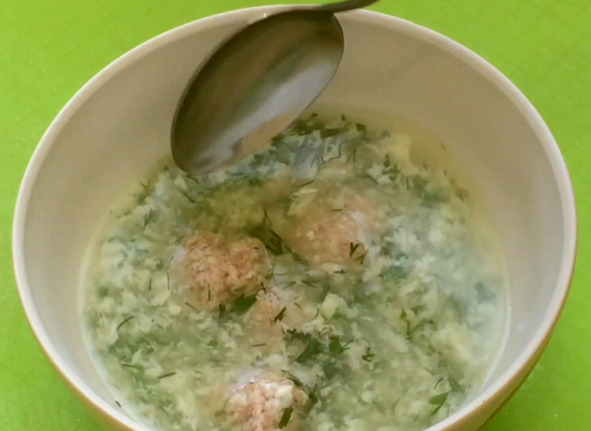 За три минуты до завершения готовки, в суп забросить одну-две жмени зелени (количество по вкусу). Такой суп можно готовить на разбавленном кефире.