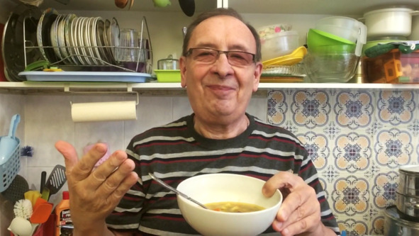 Варить супы, умеет каждый,Но выдумать рецепт не так уж просто,Случилось так, проснулся я однажды,И мозг сработал довольно-таки хлёстко!Я быстро взял компьютер в руки,И стал записывать рецепт,Писал легко, но где же творческие муки,Как-будто точно знал предмет!Всё в этом супе было просто,Картошка, лук, морковка, печень,Секрет лишь в том, чтоб соблюдать последовательность жёстко,И от рецепта отступать не может быть и речи.Смотрите, суп какой красавец,И изумительный исходит аромат,Не в правилах моих лукавить,И, если Вам понравился рецепт, я буду бесконечно рад!