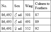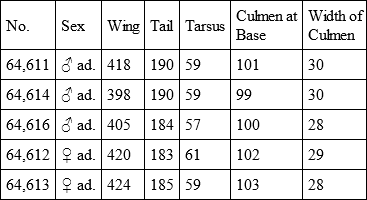 One immature example (sex not determined) was shot by Mrs. Robb White at Sagada, Bontoc, northern Luzon in July 1913 and given to Governor Forbes. This, I believe, is the first record for the species in the Philippines. The specimen, M. C. Z. 64,621, affords a wing length of 366 mm.