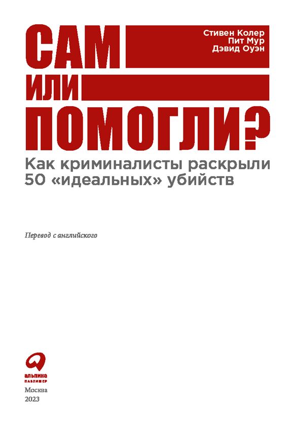 Сам или помогли? Как криминалисты раскрыли 50 «идеальных» убийств / Стивен Колер, Пит Мур, Дэвид Оуэн; Пер. с англ. – М.: Альпина Паблишер, 2023.