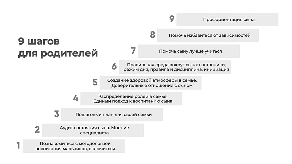 Сейчас вы видите картинку, где представлены девять шагов для родителей.