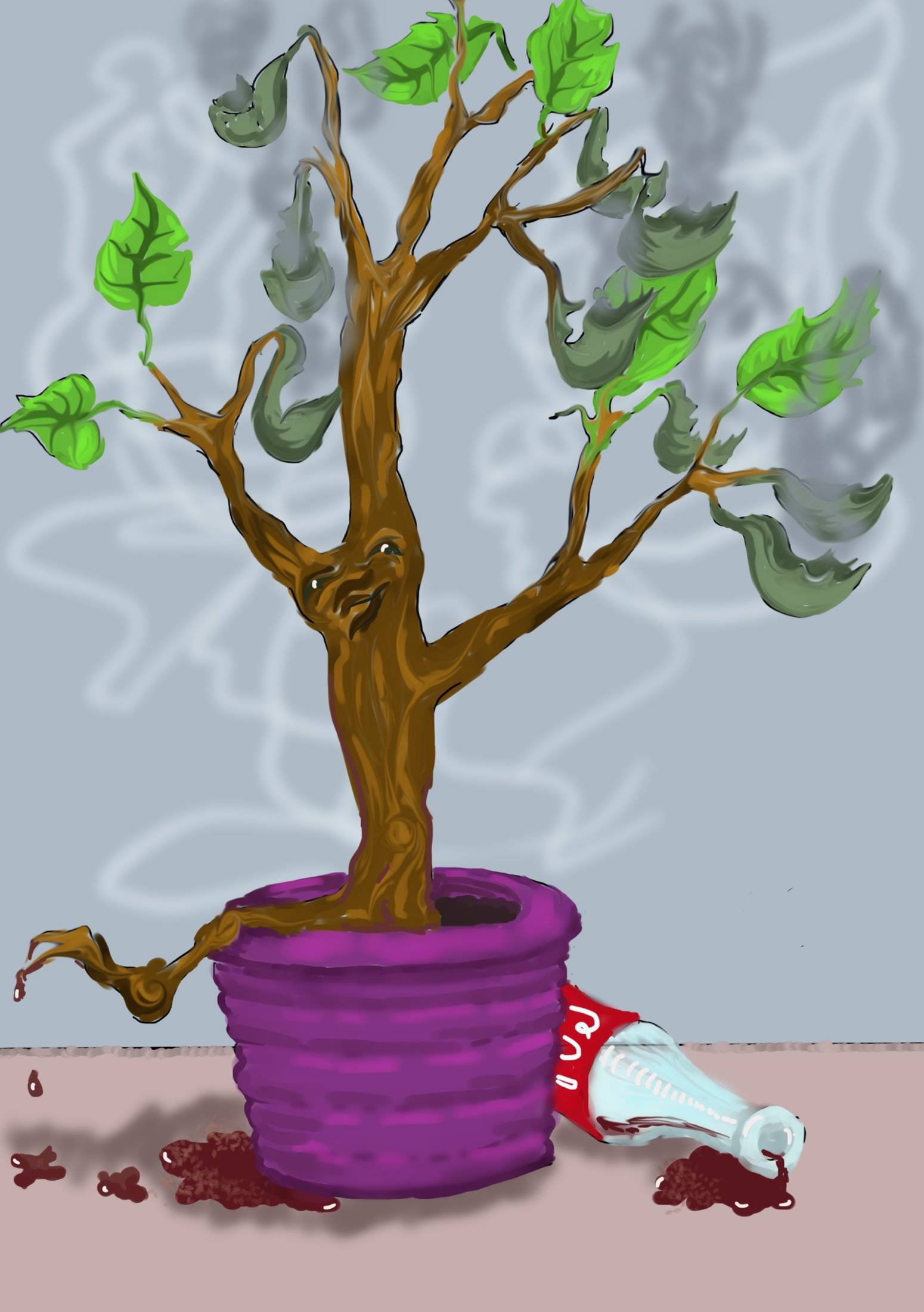 – Вот именно – ой! Курение забралось к другу в комнату и стало пригоршнями запихивать сигареты ему в пасть!