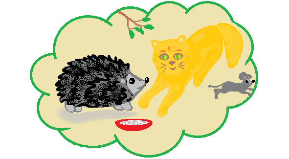 Ёжик – серенький клубочек —К нам приходит в гости ночью.Смело ходит по двору —Не боится детвору!