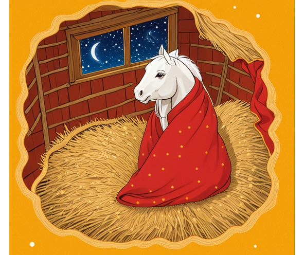 Устала лошадка —Ей грустно немножко.И смотрит лошадкаНа небо в окошко.Там звёзды сияют,Огнями играя,И ей говорят:«Не грусти, дорогая!»