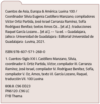 La revista literaria Luvina publica el presente libro de 100 cuentos del mundo, recogidos de entre sus primeros100 números y con los que cumplió 25 años de editarse sin interrupción.