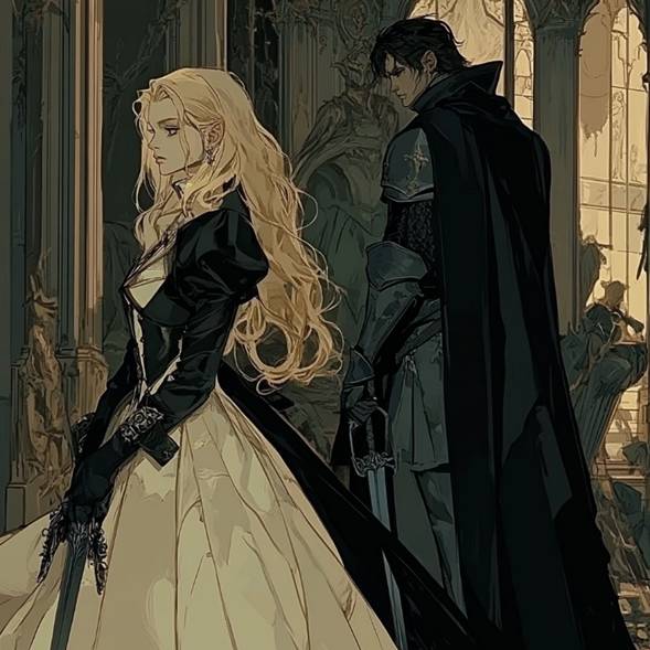 Рыцарь, стиснув зубы, сделал шаг вперёд, его меч сверкнул в свете заката. Его глаза пылали гневом, и он готов был обрушить всю свою ярость на колдуна. Но Кара, видя его намерение, подняла руку, останавливая его.