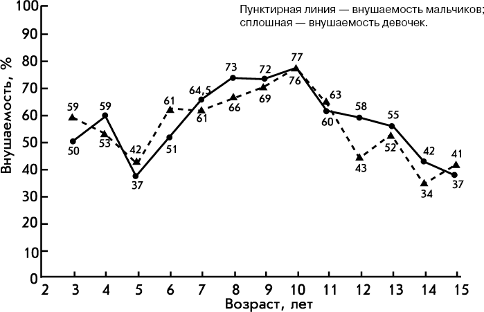 Рис. 4.1. Возрастная динамика внушаемости (по А. И. Захарову)