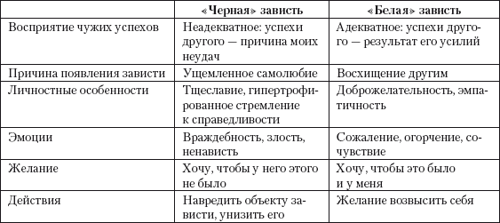 Итак, подведем итог и сопоставим признаки «черной» и «белой» зависти (табл. 2.1).