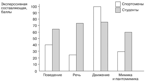 Кроме того, некоторые исследователи отмечают, что у разных людей эмоции могут выражаться через различные экспрессивные каналы. Л. М. Аболин (1987) показал, что у спортсменов и высококвалифицированных рабочих доминирующей эмоционально-выразительной характеристикой является двигательный канал (направленность движений, их скорость, темп, амплитуда, слитность). У студентов во время лекций и практических занятий этот канал тоже является ведущим. Однако при волнении во время сдачи экзаменов и зачетов ведущими становятся речевой и мимический каналы (рис. 2.4).