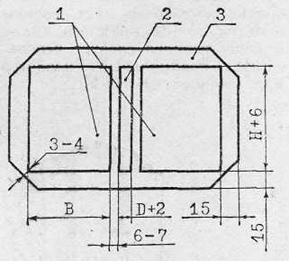 Р и с. 18. Изготовление цельнокрылых переплетных крышек; 1 – картонные сторонки; 2 – отстав; 3 – покровный материал