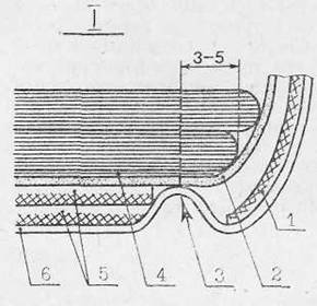 Рис. 20. Зажимные доски для формовки рубчика: 1 – отстав; 1 – марля; 3 – рубчик; 4 – тетрадь с форзацем; 5 – картонная сторонка; 6 – покровный материал