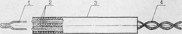 Рис. 21. Термоперо для выполнения надписей с использованием фольги: 1 – нагревательный элемент; 2 – трубчатые контакты; 3 – державка; 4 – провод для подключения к трансформатору