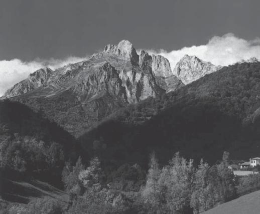 Третья заповедная зона, объявленная в 1995 году Национальным парком Пикос де Эуропа, представляет собой горную страну между Астурией, Кантабрией и Леоном. Природа одарила этот северный край мягким климатом, рудными богатствами, многоводьем рек, обилием лесов. Узкая полоса земли, обрывающаяся к Бискайскому заливу, замкнута с юга цепью гор; внутри голых скал, как плоскости стекла, лежат горные озера, зеленые склоны охватывают погруженные в туман ущелья. Один из проходов в труднодоступную Астурию – перевал Пуэрта дель Пахарес (Ворота птиц), откуда открывается ослепительный вид на многоплановую панораму гор, которую венчает хребет Пикос де Эуропа. Так, издали видя эти зубчатые снежные вершины, их прозвали возвращавшиеся домой моряки.