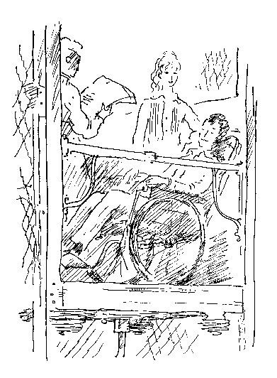 Больница находилась в одном квартале от центра города. Чтобы помочь Эми, Кирк руками вращал колеса. Проехали мимо старых домов, разбросанных по больничному саду, в них была контора больницы, разные канцелярии. Оставили позади школу, библиотеку и небольшой парк.