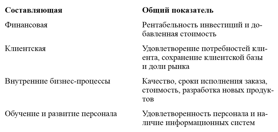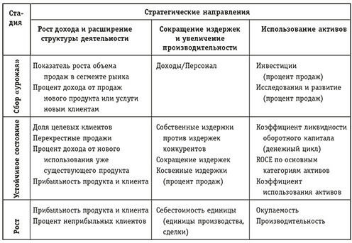 Однако авторы особо подчеркивают важность специфических показателей, которые формулируются исходя из корпоративной стратегии, что будет проиллюстрировано примерами.