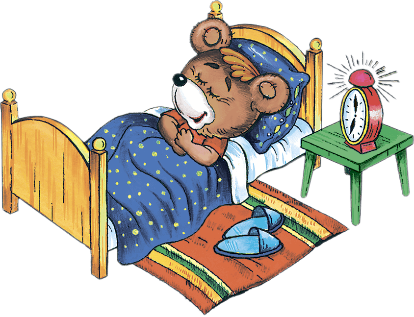 Медвежонок спит в кроватке.Про учебники, тетрадкиВспоминать не хочет он –Смотрит свой десятый сон.