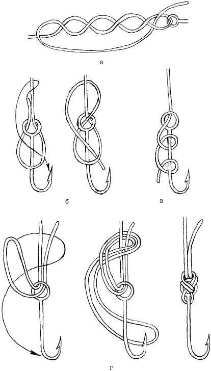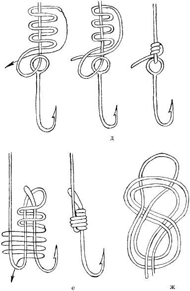Теперь рассмотрим узлы, применяемые для привязывания крючков: