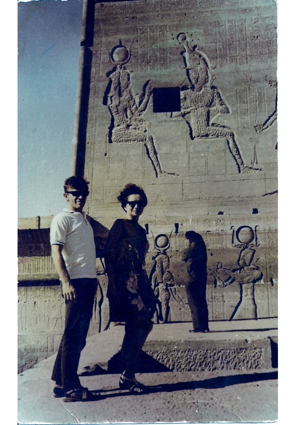 Я с женой на фоне горельефов храма Изиде, частично выщербленных поздними фанатиками