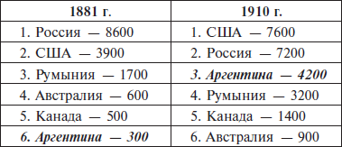 Обратимся к упомянутой выше фундаментальной книге H.A. Крюкова «Аргентина. Сельское хозяйство в Аргентине в связи с общим развитием страны» (Петербург, 1911 г.), предоставляющей обильную информацию, что называется, из первых рук о положении в стране и тенденциях развития аргентинской экономики.