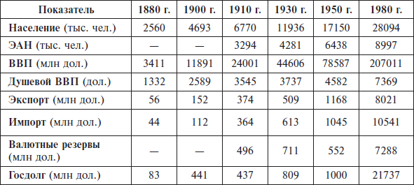 Динамика основных макроэкономических показателей (1880–1980 гг.)