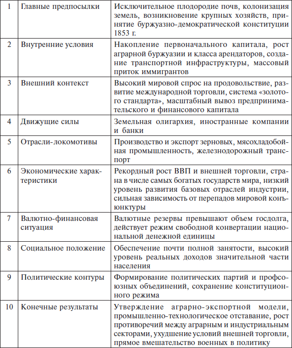 Суммируя вышеизложенное, зададимся вопросом: какие главные факторы вызвали наступившие в 30-х и 40-х гг. прошлого века «перебои» с функционированием аргентинской агроэкспорт ной модели и в конечном счете предопределили ее замену другой парадигмой экономического развития?