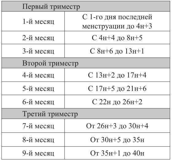 Однако средняя продолжительность беременности составляет десять лунных месяцев (в каждом по 4 недели), то есть сорок недель, или 280 дней, что составляет девять месяцев и одну неделю.